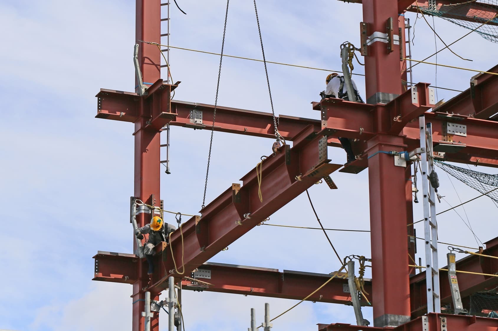 安全管理・工程管理を徹底し、ビル・工場・倉庫など各種施設の施工を迅速に対応。建方・溶接・ボルト接合まで一式対応します。